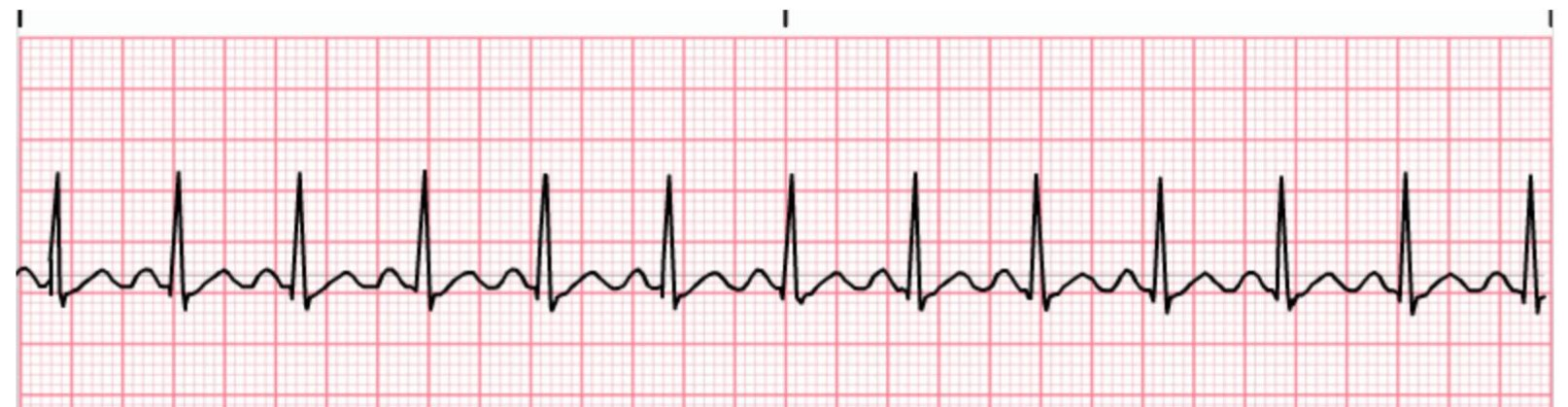 Grab your phone, or your handy stopwatch, or just look at a clock with a second hand and try to count how fast this human heart is beating in 60 seconds. Keep in mind the video is not sixty seconds, so you will have to do a count of about 10 seconds and then multiple by 6. While this method is not accepted, you should come up with the answer. In the real world you would listen with your stethoscope for a full 60 seconds to verify the rate.CorrectIncorrect -